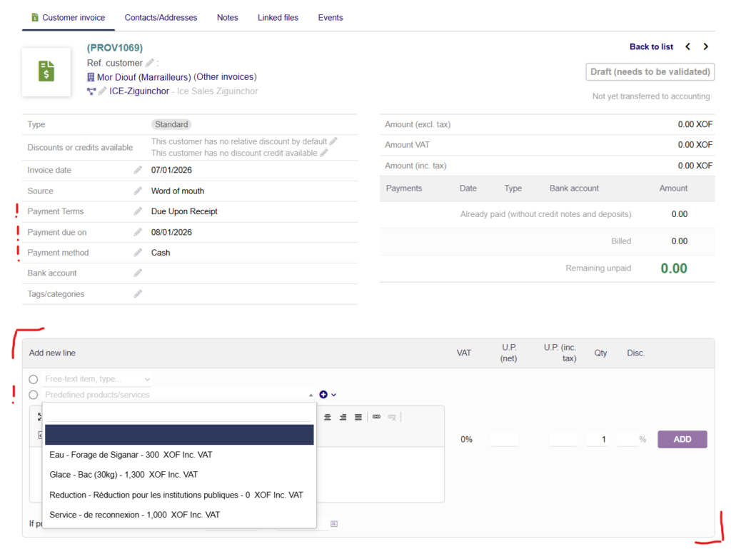 - Définissez la « Date facturation » (aujourd’hui ou dans le futur)